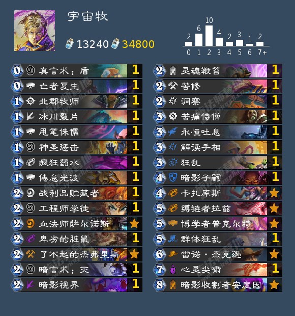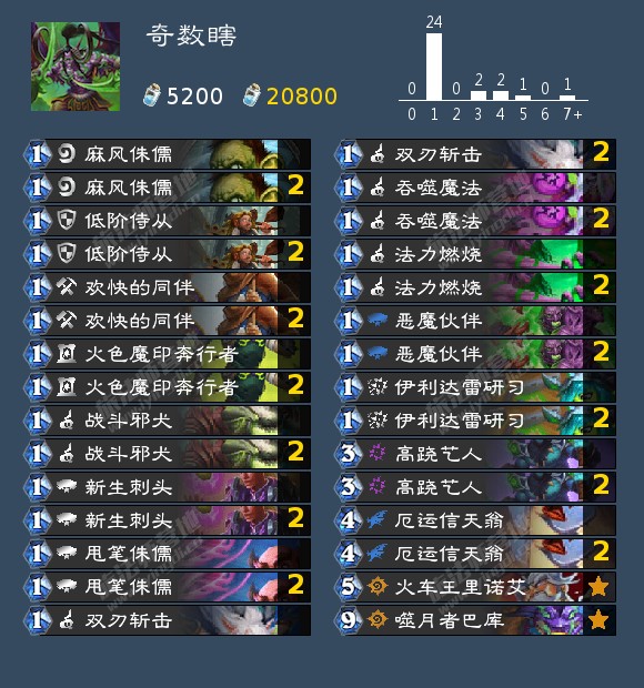 Hijodaikan这个名字相信许多玩家早已有所耳闻,我现在在这里再做一下介绍。Hijodaikan,欧美亚三服结算登顶数量总计排行外服第1。绝大部分外服玩家心中的神,能够以一己之力改变外服狂野环境。曾经用新手账号一天之内在国服打入月榜。(由于Hijo本人的要求并不公布他的ID)虽然在国服排名这一块并不能与昨天刚刚在国服登顶的日本玩家Paradox相比,但其实力仍不可小觑。迷你合集上线后,营地作者苏打首先搬运Hijo的农夫术构筑并迅速席卷国服。诸如这样的例子还有很多很多,在此就不做过多赘述。本篇文章的卡组均来自Hijodaikan,因此不做署名。