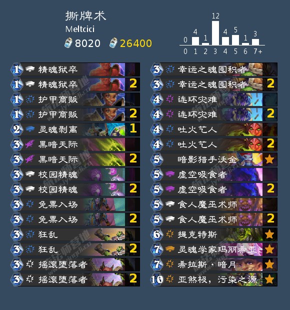 来自笔者好友Meltcici的撕牌术,他使用这套卡组最高打到了传说40名左右。