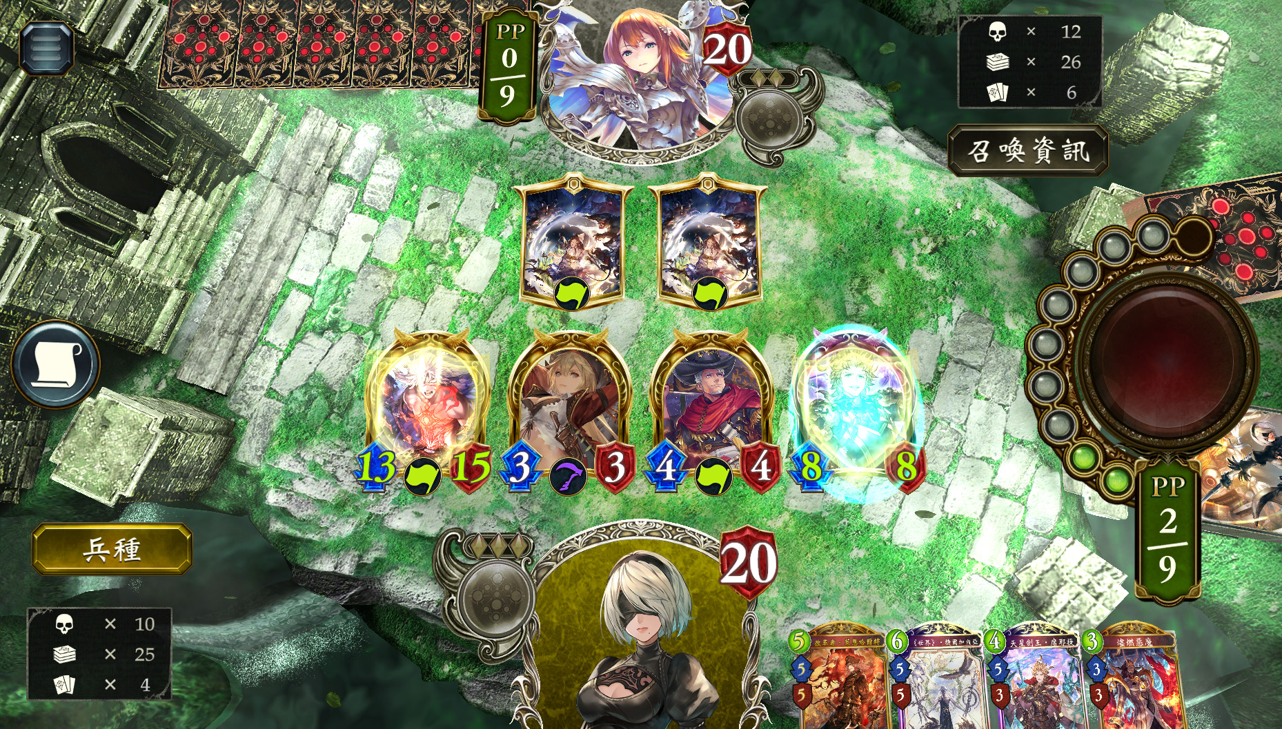 拖到中后期后,除了继续通过中立牌回血以外,这套牌还可以利用皇家随从大量回血。尽管刷进化组件不像奥义皇那样丰富,但这套牌依然能通过不败剑圣·景光、天星剑王·席耶提、改革者·莱恩哈尔特、飞向未来和爆能烬燃提供额外进化机会,通常可以在第7~8回合刷够5次进化,在第8~9回合刷够7次进化,触发煌剑战士·亨莉雅妲的回血乃至抽牌效果。