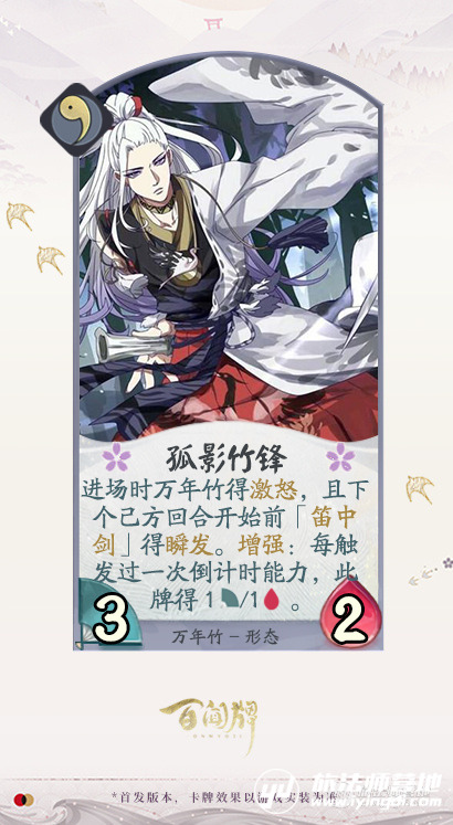 万年竹属于苍叶式神,有三张笛中剑衍生牌,当你使用笛中剑或倒计时触发后,会获得下一式。三张笛中剑衍生牌效果不同,而强度逐渐提升。万年竹的所有牌都是为笛中剑服务的。