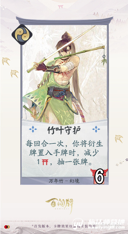 思路:万年竹最初的设计思路就是三张战斗牌的轮回,做一个隐于竹林,一击穿云的战士。他的任务就是如同斩破竹林一般斩碎敌方的防御,我在修改完之后很有感觉。定位上,在倒计时体系可以替代山风或鸩,苍叶快攻体系可以替代妖刀,甚至可能和灯姐书翁荒一起组建未曾设想的过牌体系,定位十分广泛。