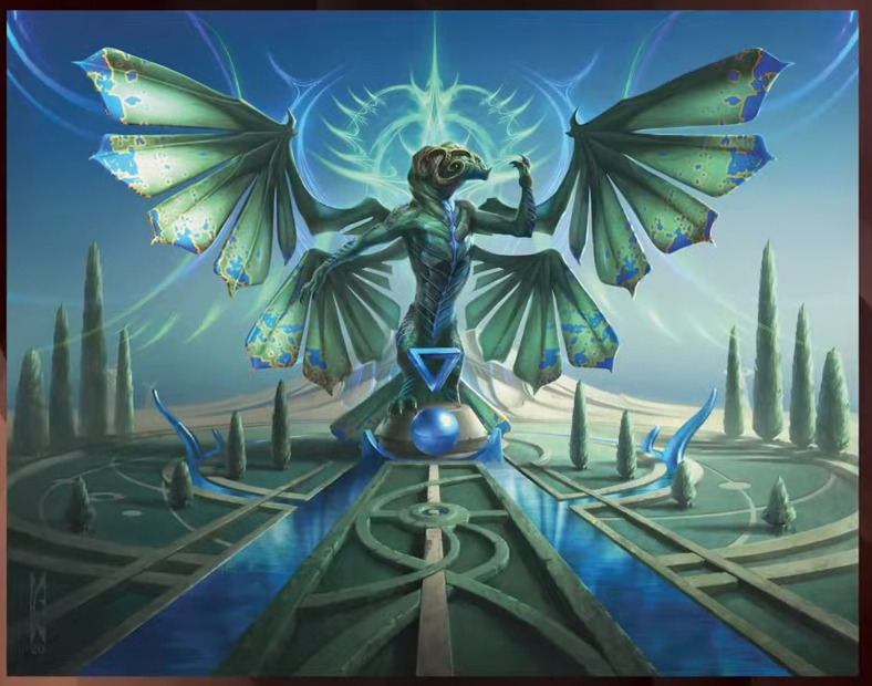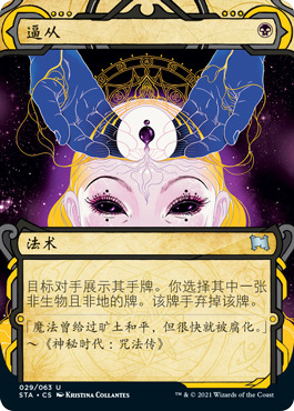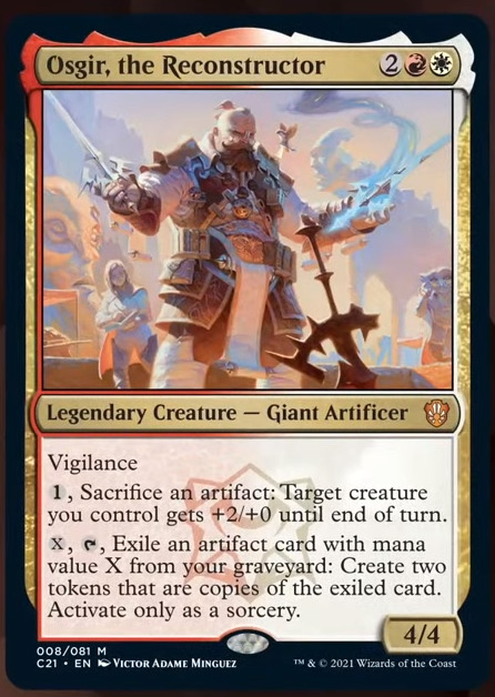 X,横置,从你的坟墓场放逐一个法术力值为X的神器:派出被放逐的牌的两个复制。只能在法术时机起动。