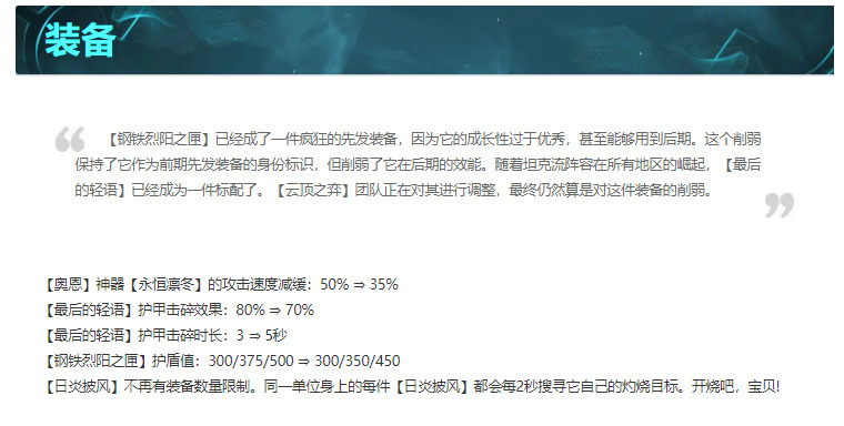 永恩凛冬解读:削弱,上次更新就削弱了一次,这次又削弱,关键这奥恩的装备又不是可控的,每一件都是神器。削弱了依然很强,加血加护甲,还加法强,还能控人。