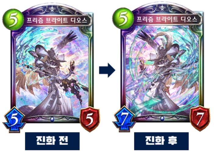 回合结束时,如果这张牌的魔力增幅次数为20次或以上,则会展示这张牌,召唤1个棱镜辉光·狄欧斯到场上并使其进化, 然后令手牌中的这张牌消失。