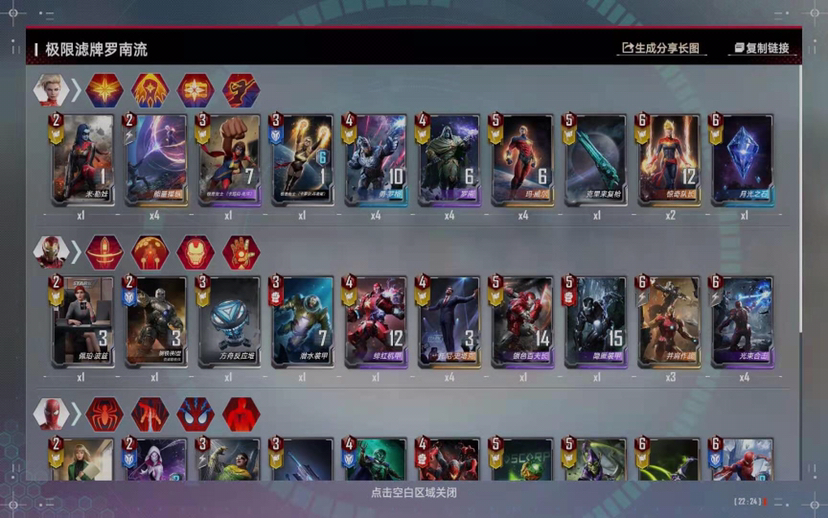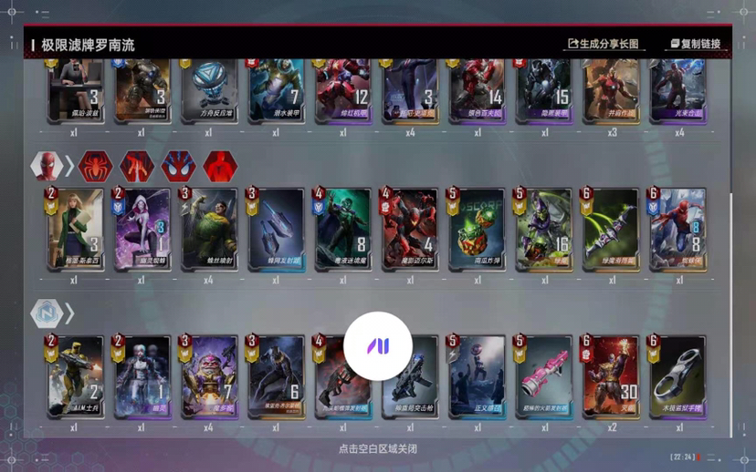 7、能量操控是一张性价比非常高的卡,既能在烤串流中使用,在本卡组也能发挥巨大的作用,但是使用这张卡一定要防蛛丝喷射,这张卡的效果也可以叠加,笔者就有过四星罗南加AIM导弹穿甲加两个能量操控,一个罗南灭掉对面全团的经历。一般情况下,能量操控在第五回合以后才会抽取,在自己阵容明显落后的时候对“二星以上”的罗南使用。四强以后必用卡。