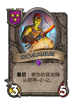 - 3星3/5,暴怒:使你的其他随从获得+2/+2。