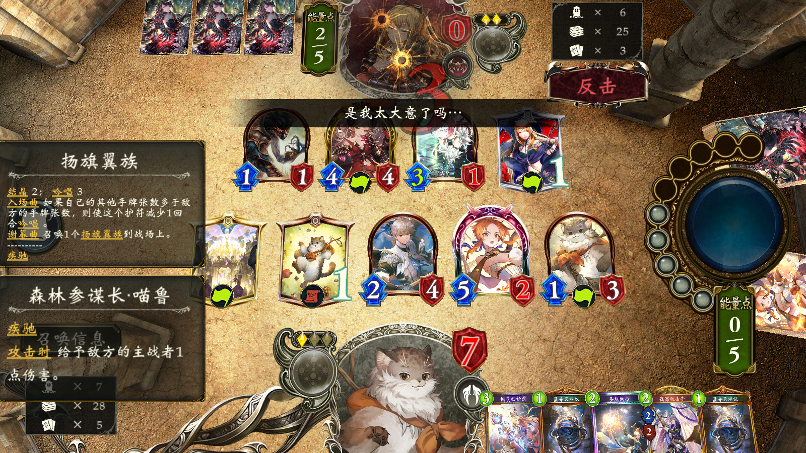 前期优先使用护符。在需要快速抢血的对局中,例如对法、龙、仇,优先使用喵鲁登场。其他对局中优先使用星导天球仪,以保证后续回合顺利展开。