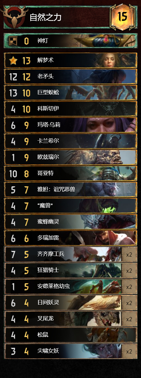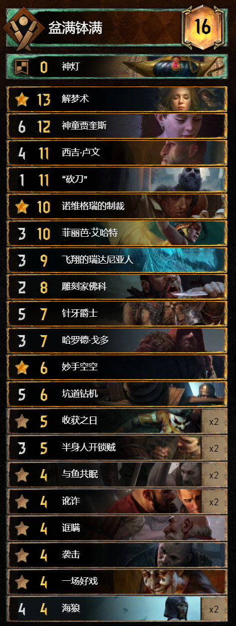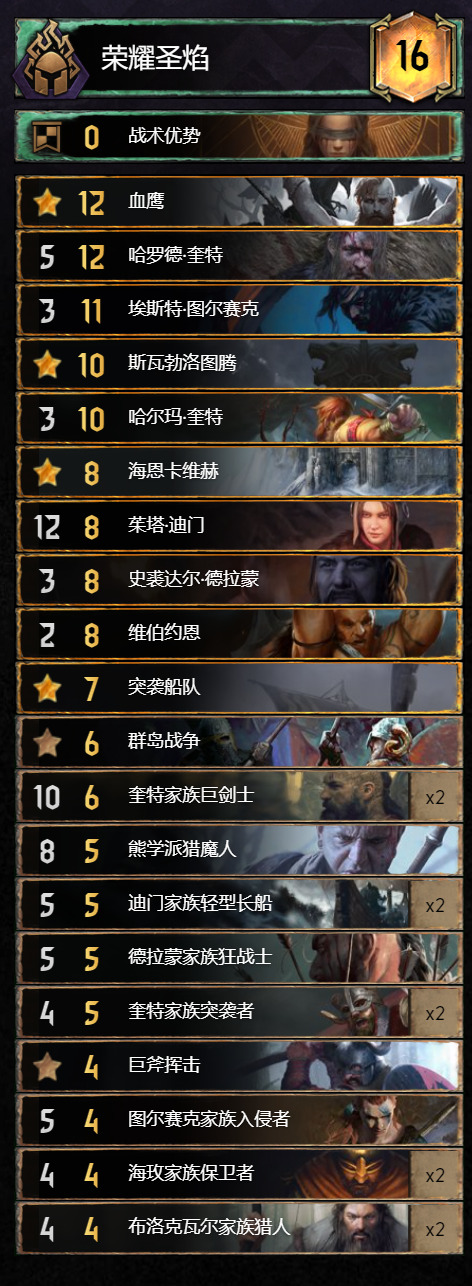 昆特牌没有恶心的卡组,这是我想说的。过牌多的就选爆牌帝国,基本上一抓一个准。点数扎实的,就想想办法带带热浪,亚登针对下。铺场多的就带10p的那个猎魔人。猎魔北多的带满解牌。基本上帝国这边没什么问题。我反正其他阵营玩的不多,也没什么实质性的帮助。全篇我基本上都是在说我构筑卡组时的想法。也是在和大家讨论。又臭又长可能对某些老哥没什么帮助。