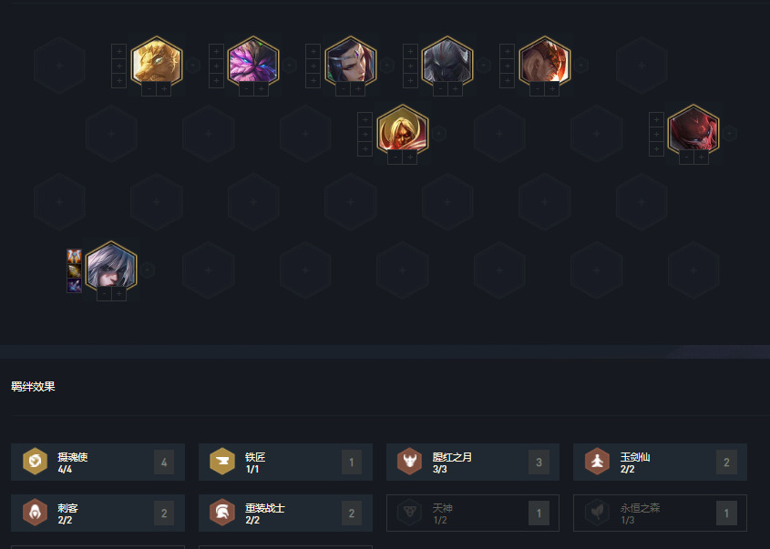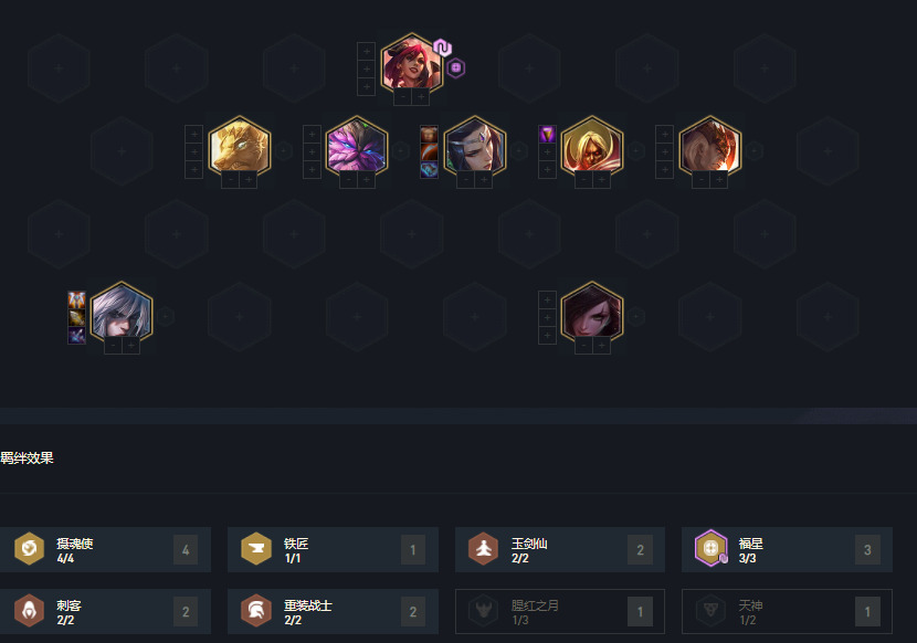 如果男刀刺客天选,就可下派克换5费其他强势单卡,如果在有刺转状态下可之间考虑4刺转职给乌鸦,这套阵容成型较难,但在阵容棋子全二星(乌鸦1星)的情况下吃鸡率超高。