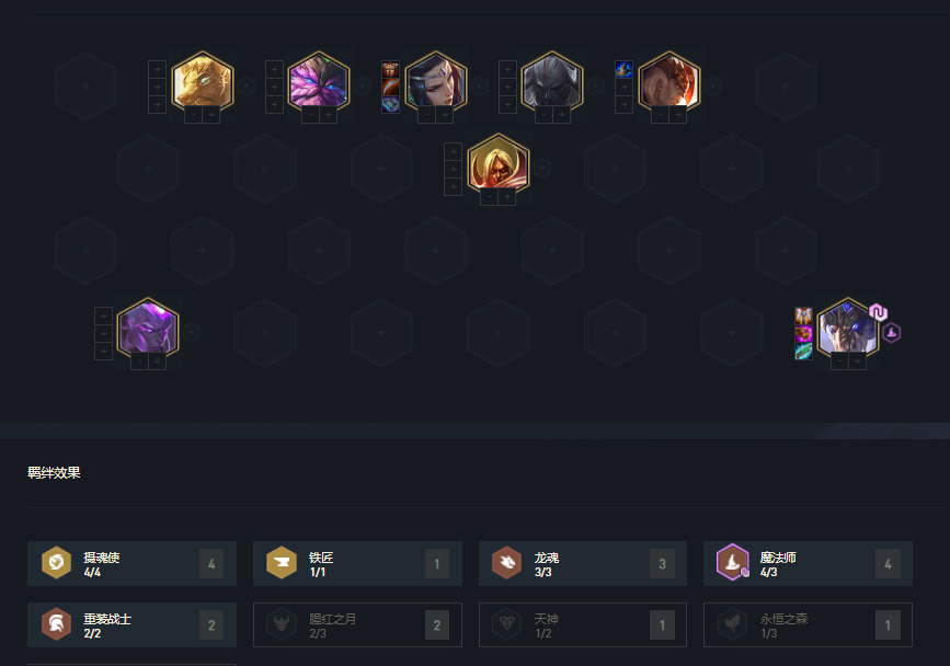 如果阵容偏向法系龙王的装备,也可考虑走上面阵容,4摄魂可下狗头吸血鬼增加安妮、璐璐变5法。