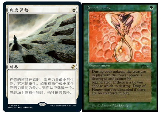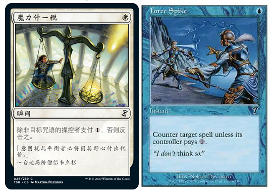 【魔力什一税】在当年构筑的表现比【力之钉】更好,因为你在一个设定上没有康的颜色用出康的破坏性是要超过在一个本来就用康与敌人互动的颜色的。并且,白色还擅长限制敌人的法术力,这使得这张牌更有表现空间。本期轮抓里这是张不错的填充物,早期能出手往往能赚取大量节奏,虽然后期掏到等于空气,但是你掏个地一样是空气对吧?