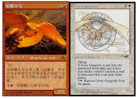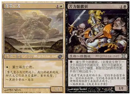 这种凤凰类复活效应,最早居然出现在白色的生物上??值得一提的是,不考虑化形,万智牌目前为止唯一一个不能以任何方式复活的凤凰是以天朝为背景的【幻境奇谭】系列,可以说对flavor的考据很用心了。