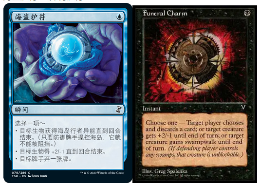 【葬礼护符】是万智牌最早期的两批护符之一,并且是其中唯一强度比较阳间的。而这张换色单卡让蓝色有低费解还能丢手牌,是个还可以的filler。