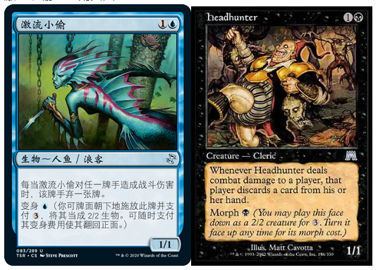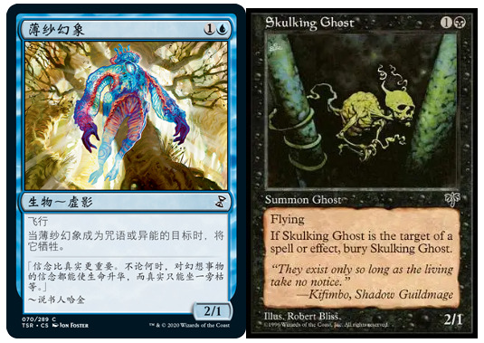 这种被摸一下就死的机制原来是黑色的【隐匿鬼魂】【隐匿的逃犯】和【时间漩涡】新出的【隐匿骑士】,这期给了这张蓝色单卡,正是从这张卡开始,万智牌把这类异能基本全给了蓝色的【虚影】生物。本期限制tapper很多,想用这个生物的话还是自求多福吧……