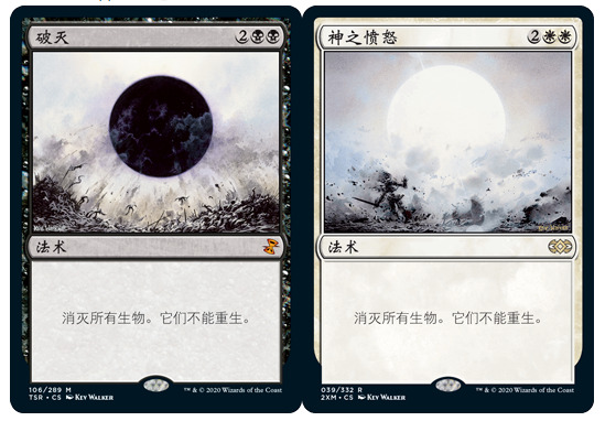 黑色的【神之愤怒】,曾经由于其不可替代性比【神之愤怒】用得多得多,可以说是【时空混沌】这个系列的代表单卡。当然,在【毒雨倾盆】和【寒冬杀机】出现后这种不可替代性逐渐消失。限制没什么好说的,即使你再“不愿意在限制赛使用神愤”,也没有不一抓的理由吧?
