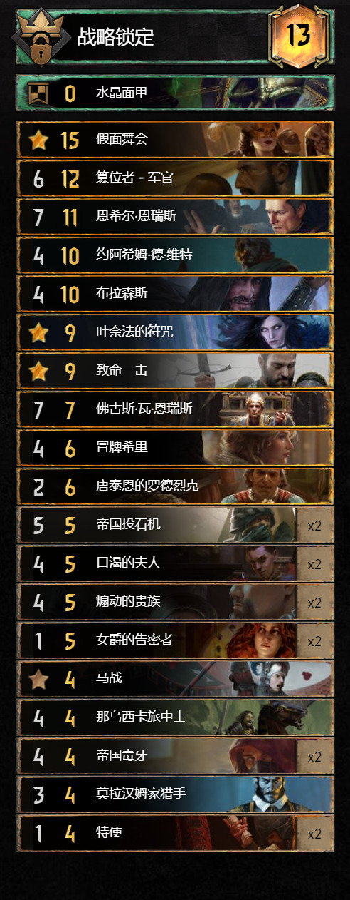 PS:下面的牌表我转成中文的是为了方便大家抄作业,国际服的账号切记不要用zh-cn的一键导入链接,会回归国服!
