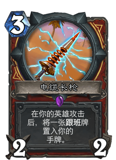 对于主要依赖特效的武器而言,耐久值显然更加重要,而诸如电缆长枪、海盗之锚等牌都离开环境之后,这张新武器应当就会成为海盗藏品的新任检索对象,只能说它确实很强,有潜力成为28+2(加上海盗藏品甚至是26+4)的存在。