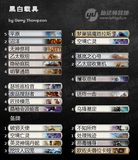 这套也是LZB_mtg的套牌。他原本的牌表1费曲线上有黑檀军团骑士,导致整套牌黑色更深。那样能更容易1回合攫取思绪但就不太好支持乌锋基定和空境亡灵了。法术力主白似乎会更强。