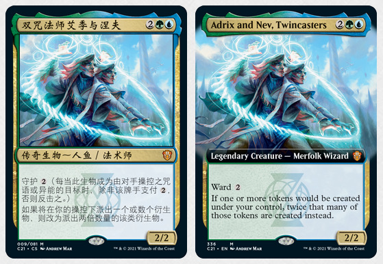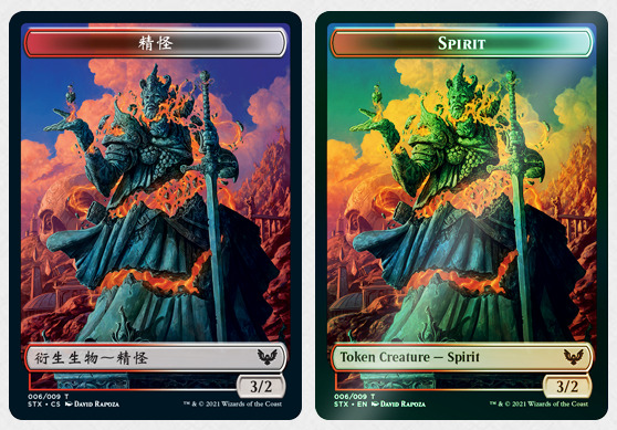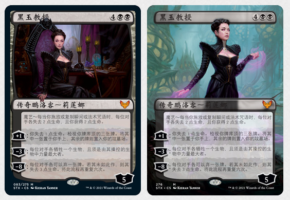 斯翠海文:魔法学校里充满了很棒的插画,宽图牌是我们用来确保每个系列里稀有牌和秘稀牌都有的超酷处理方式。斯翠海文里有额外的宽图牌,包含 69 张宽图的稀有牌和 12 张 宽图的秘稀牌—这些宽图牌都会有闪卡跟不闪的版本。除此之外,在指挥官(2021 年版)的五副套牌里,我们希望确保那些新的稀有和秘稀牌也有宽图的版本,所以指挥官(2021 年版)里新的 70 张稀有牌和 10 张秘稀也都会有宽图的版本(只会有不闪的牌)。
