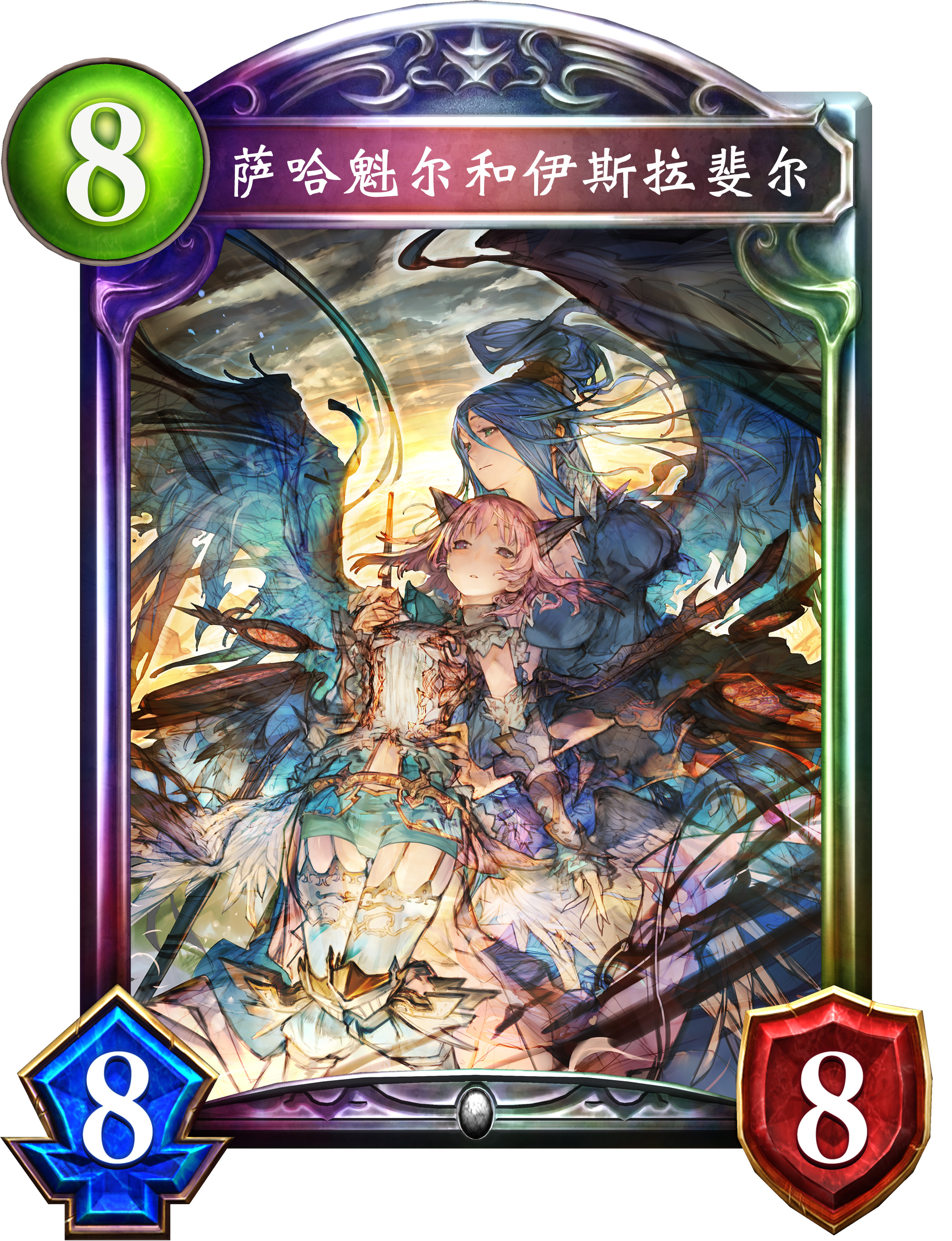 今天我们将会为大家带来一张影之诗第二十弹卡包《暗黑的威尔萨》的全新中立传说卡牌:萨哈魁尔和伊斯拉斐尔。