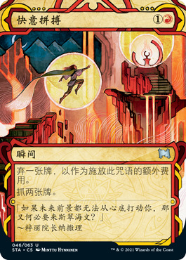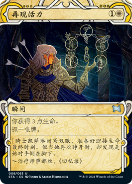 普通秘典牌和日文异画版都会有闪卡,而聚珍补充包中还会有新的蚀刻闪版本。