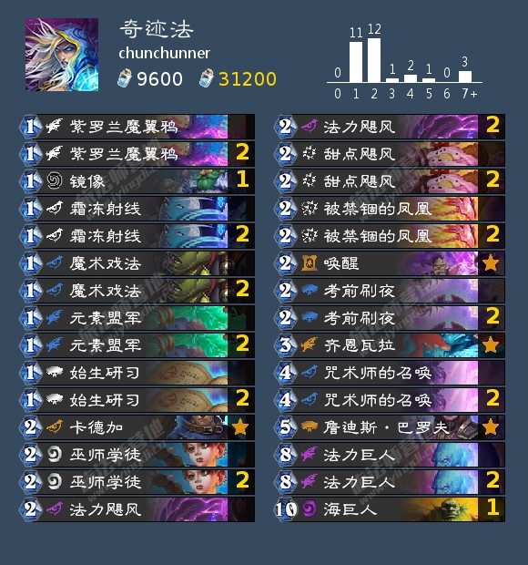 chunchunner以7-1的战绩打到传说23名的奇迹法。