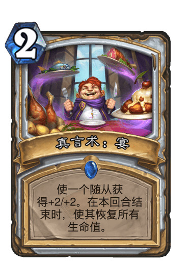 这张卡是我用下来感觉最惊艳的卡,首先配合光照元素可以白嫖减费,其次狂野的龙池子完全不差,前有能增加占场能力的暮光幼龙,龙人巫师,龙人打击者,后有能补充资源的龙人侦测者,335深蓝系咒师,黑岩法术抄写员,还有能过墙的看台喷火龙,应有尽有,龙种族几乎涵盖了每一种功能和大部分费用节奏。一定要满编。。。。但起手不用留。
