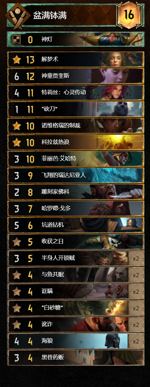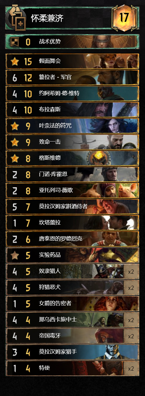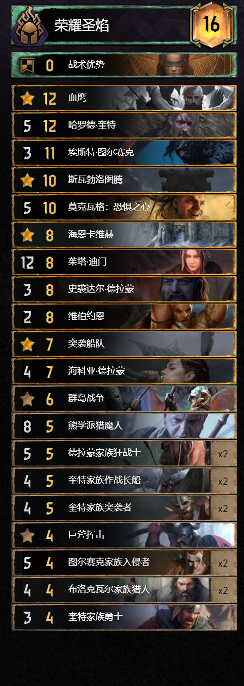 今日为资格赛出线选手卡组。Reddit老哥开发昆特数据网站:http://www.gwentdata.com/。