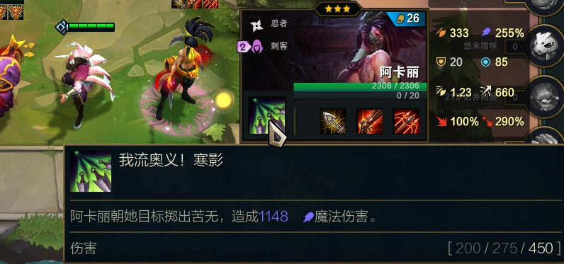 最后再说下站位,阿卡丽直接跳敌方后排C就直接跳C,如果敌方大部分棋子缩角,最后一排站位把敌方拉出来,阿卡丽躲开敌方人群。特别注意不能跳2星李青、反甲龙牙努努,缩角布隆,这几个是阿卡丽的亲爸爸不是打不动,就是被踢飞或被吃。