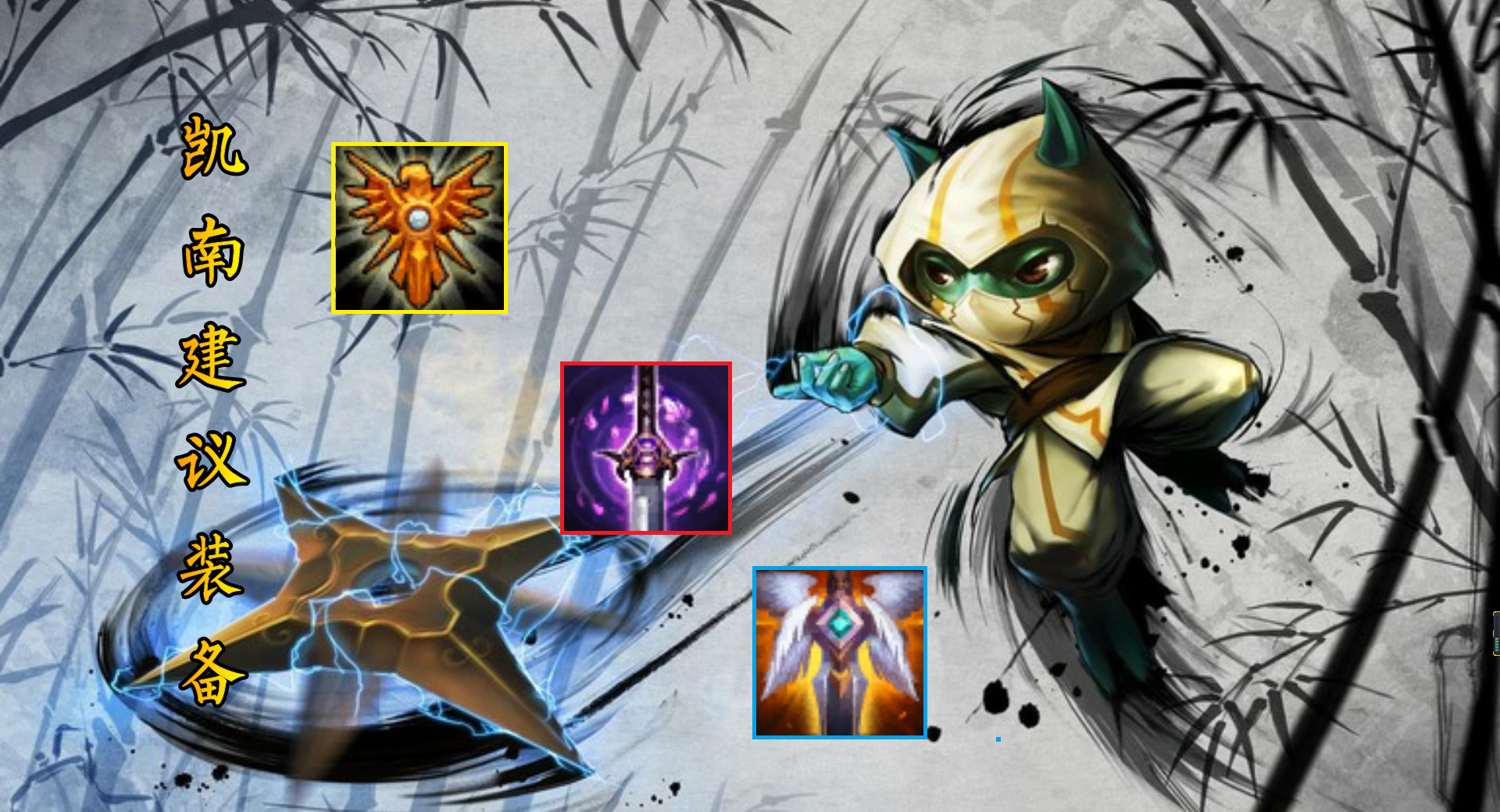 玩忍刺如果有铲子建议合成刺转,非常建议给凯南,在刺客与忍者双羁绊下凯南技能会获得极大的提升,开局跳后释放技能直接就能把敌方后排清屏。超级暴力。凯南其他装备建议合成个复活甲,凯南释放技能在复活甲复活状态,技能不会消失还是能继续打伤害与控制。
