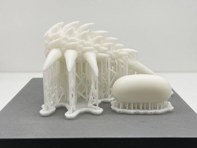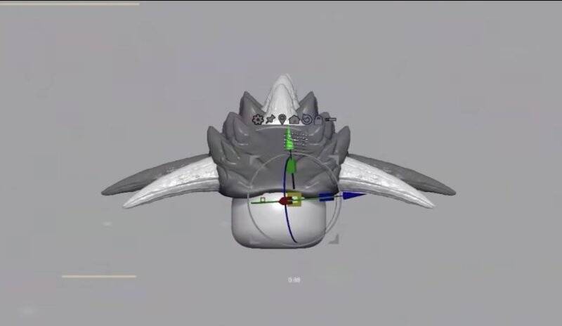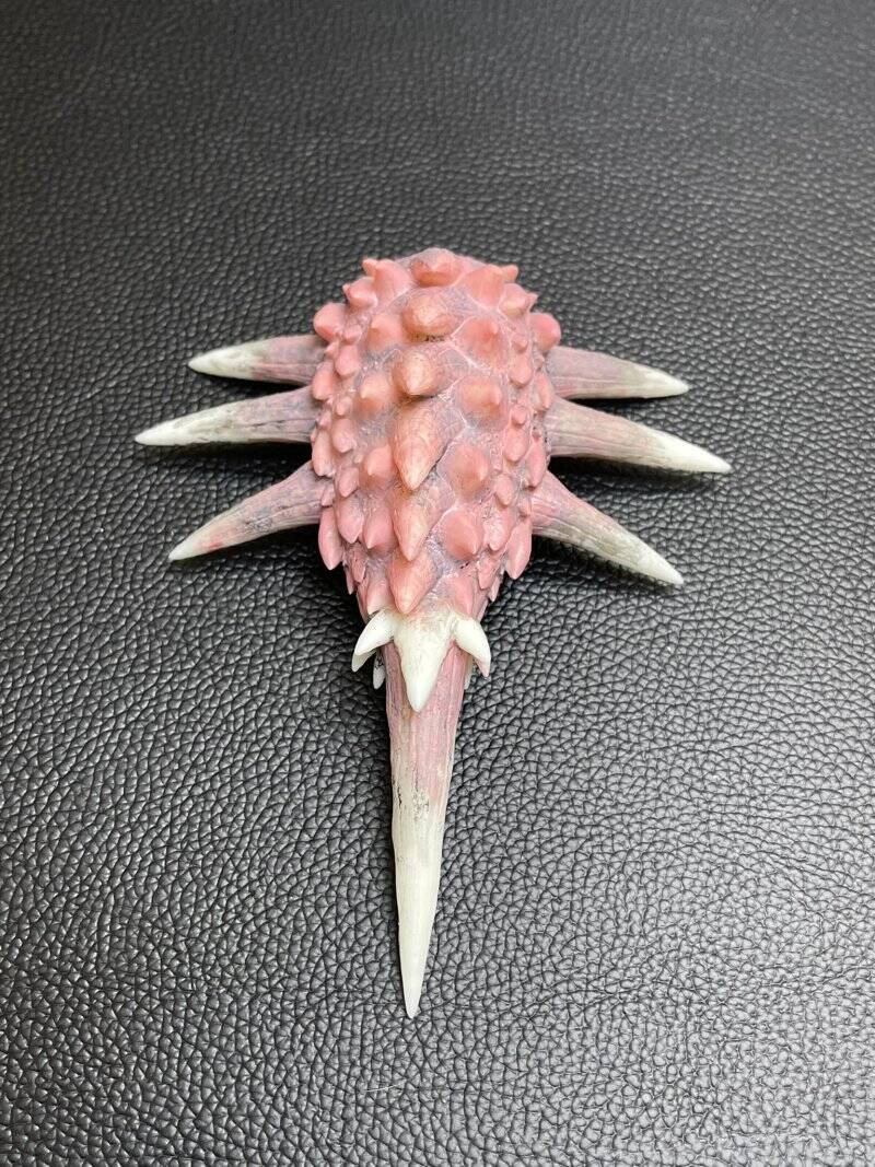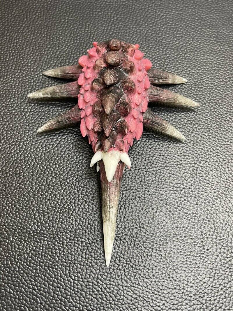 这么新鲜的食材哪里找?原型师 GRIZZRYPANDA 先使用 Zbrush 建模制作出尺寸适合的火龙尾巴、基座以及米粒,再以 3D 列印机(光固化 Form 3)将成品输出。尺寸可爱的龙尾在鳞片、硬棘、切面等处都有相当出色的造型,醋饭部份则是将米粒一颗颗黏上基座,十分耗工。不过接下来的涂装才是重点!