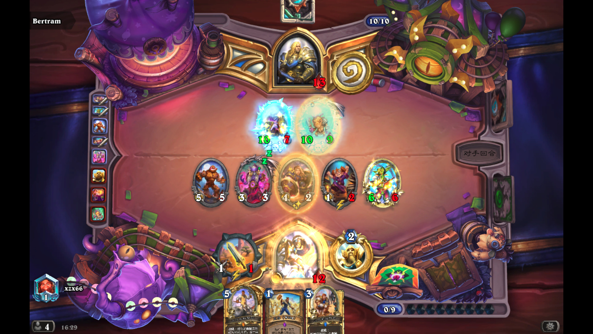 - 术士8费可以打出扭曲虚空+200斤大力士的操作,后期我们几无胜算。因此前期相比打法师和骑士内战而言要更偏向于打脸。