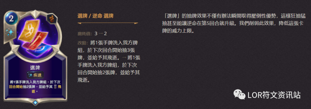 注:选牌的改动创造了另一种奇迹——4费3法力时手上有卡牌+两张选牌,选牌+卡牌打蓝牌+选牌,下回合直接抽4张,芜湖起飞!
