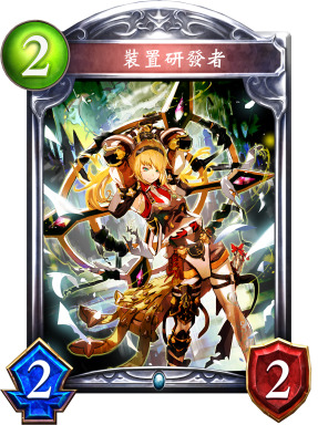 装置研发者是典范造物仇紧缺的2费动作。可以在前期登场,调整手牌,也能在中期进化召唤古老的创造物,在返场的同时为手中典范减费。