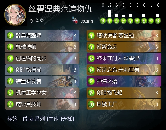 机械技师、机体工学少女等组件可以在前期获取典范,而创造物的同步、魔导具技师、反叛命运等组件则能高效制造或召唤造物,为手中的典范减费。到了中后期,造物仇便能凭借这些被减至低费甚至0费的典范赚取巨大价值,例如召唤锋锐的创造物遏制对手攻势、消耗对手资源,或是通过迅袭的创造物抢血,或配合其他组件打出高斩杀。