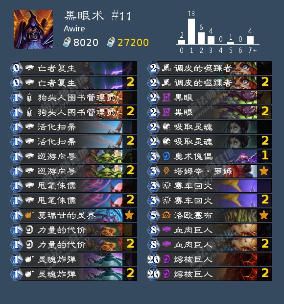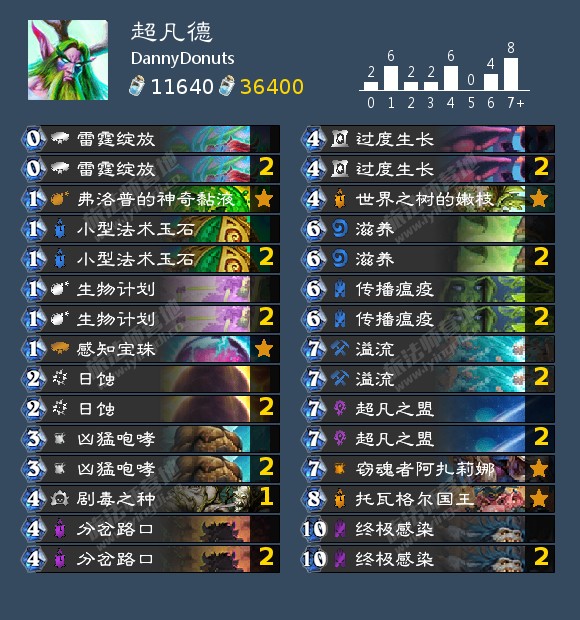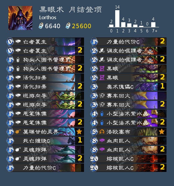 (Lorthos在上一版本构筑的黑眼术在美服亚服双登顶,Paradox使用他的构筑在国服登顶,Lasagne在将一张紫水晶改为火车王后在欧服登顶。)