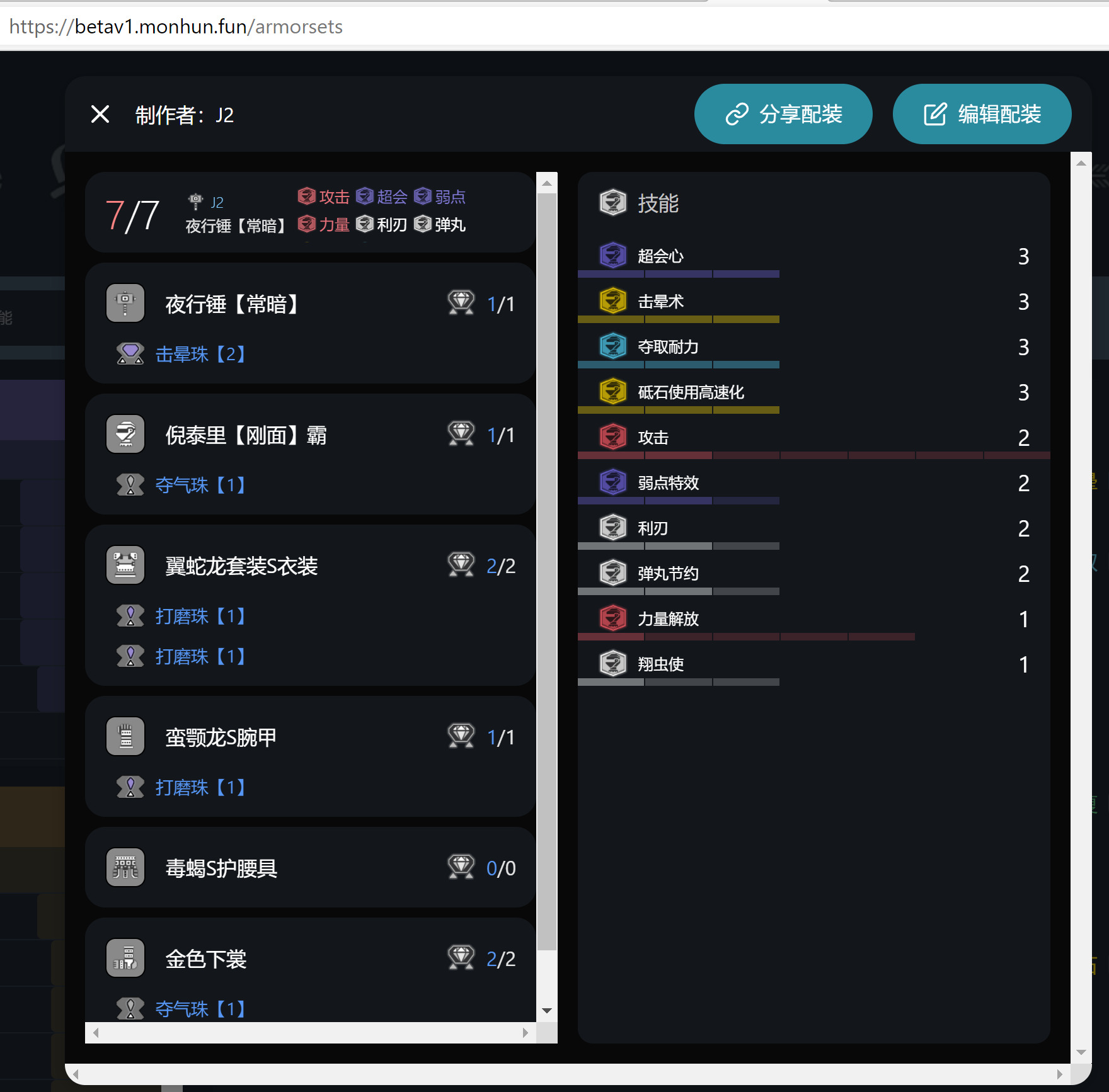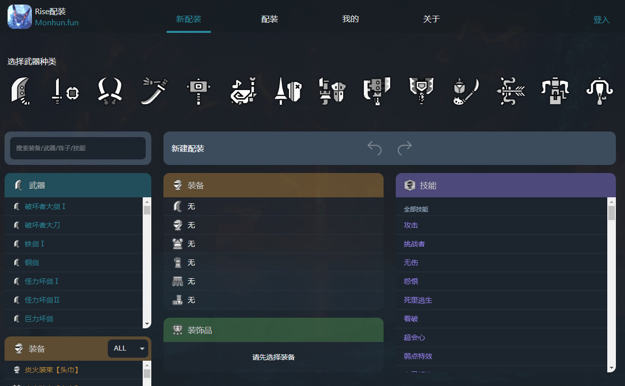 本配装器着重于方便猎人们搭配出理想的技能组。