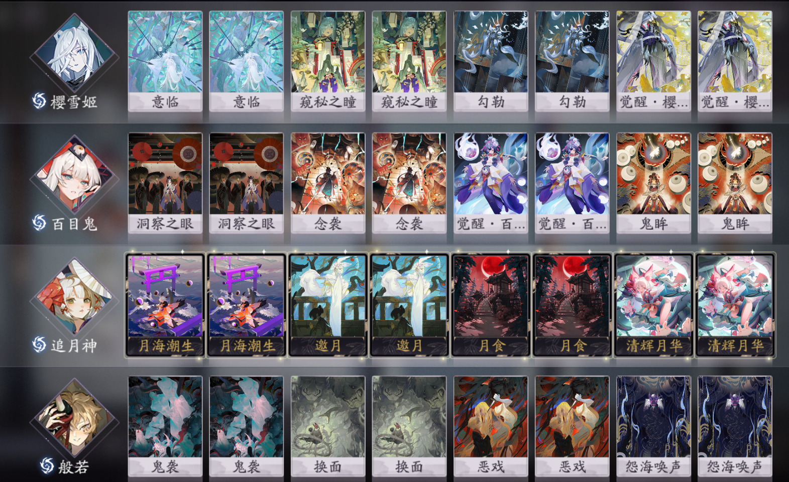 阵容名: 樱雪姬 觉醒·樱雪姬 (2) 意临 (2) 窥秘之瞳 (2) 勾勒 (2) 追月神 月食 (2) 清辉月华 (2) 月海潮生 (2) 邀月 (2) 百目鬼 洞察之眼 (2) 念袭 (2) 觉醒·百目鬼 (2) 鬼眸 (2) 般若 恶戏 (2) 鬼袭 (2) 换面 (2) 怨海唤声 (2) 阵容码:Ml8xMDFfNTYxODU1NF8xNjE3MjUxMTAxfHp4AAACAAAAikMBAHZDAQB6QwEAfkMBAE4yAQBSMgEAVjIBAFoyAQDmMwEA7jMBANYzAQDeMwEABlABAPZPAQD6TwEA/k8BAA== 如果想要使用此阵容,可将阵容码复制到剪贴板,然后在“新建阵容”里点击“使用阵容码”进行粘贴。