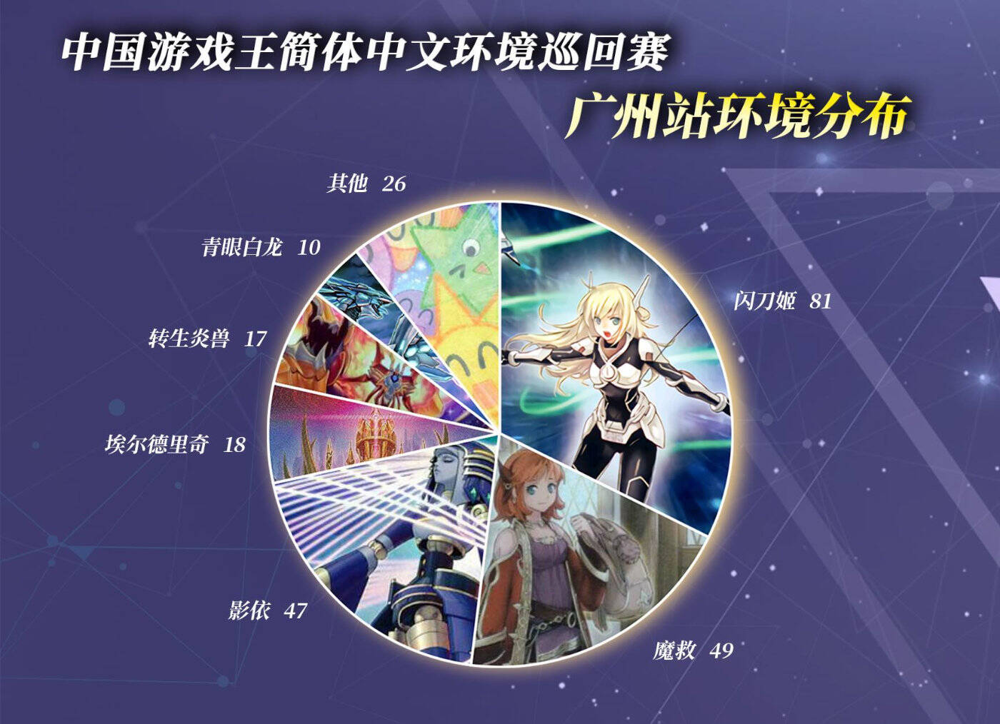 受RC03的『墓穴指名者』、『浮幽樱』这样新卡的威胁,不少选手近期都放弃了使用【影依】卡组参赛,而大刀选手则自己给出了简中环境【影依】的答卷。作为16强唯一的【影依】,大刀选手一路对战4位【闪刀姬】机师获胜,证明了这个卡组主题在这个环境中的强度。
