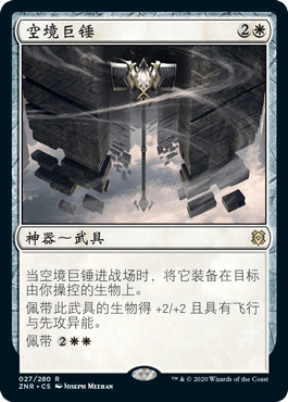 寰宇蛇信徒也比妖精幻视师更适合武具牌。武具牌只能同时使一个生物更强,所以它在大规模战场上能起的作用很小。而且武具需要消耗费用去使用,这和抓牌咒语就有些冲突(因为大家都需要费用)。同时,在小规模对局中,双方的手牌都不会太多,这时法术力水槽就比抓牌咒语更好用一些。