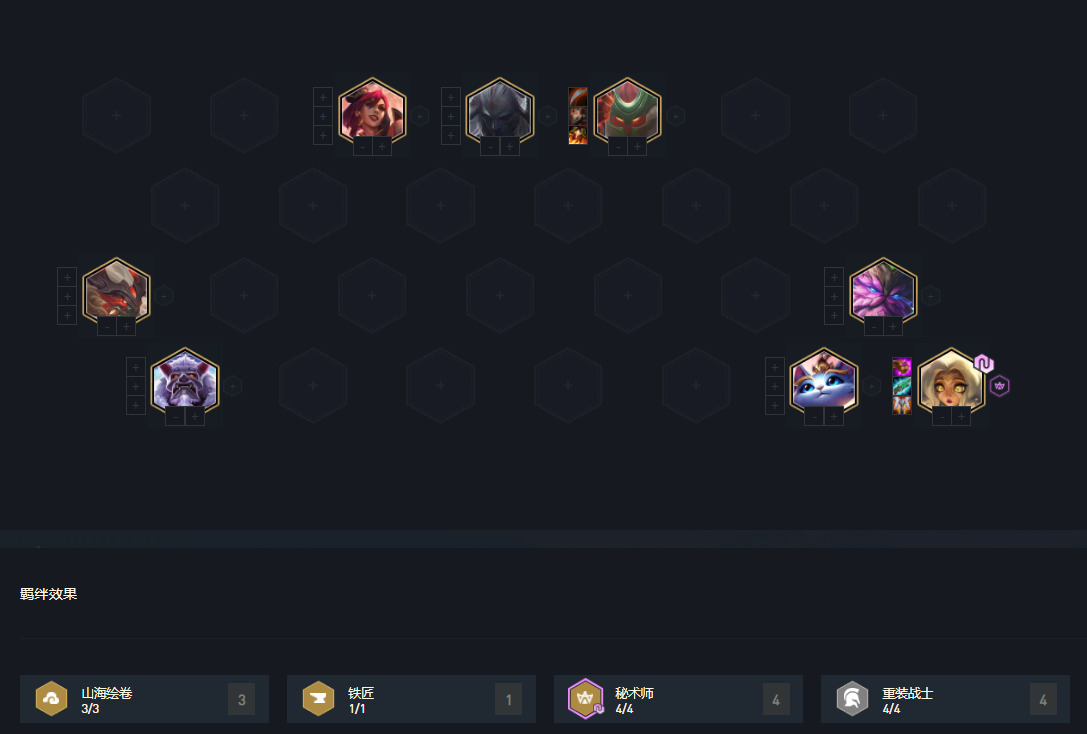 但山海阵容也有个很大得缺点,就是妮蔻启动会很慢,在这版本每局基本都会有一家同行,妮蔻与泰坦追三较难,在有同行得情况下,摩昂更建议上8级在进行追三。8级最差也能开出4重4秘,利用超肉得羁绊来苟分。现在对大成山海比较克制得阵容较少,除了8斗与蛮王拼多多,基本上没有太克制得阵容了。且阵容装备需求也不算太高,吃分还是较为容易。