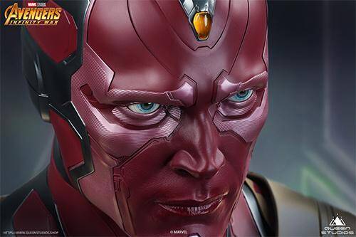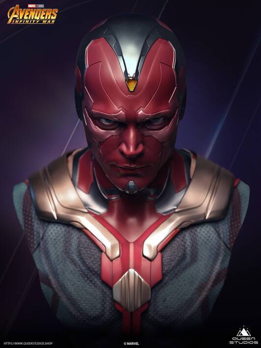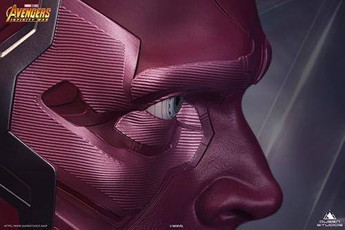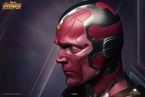 擅长以大比例雕像表现角色魅力、重现逼真细节的造型厂牌Queen Studios ,以MARVEL漫威宇宙电影《复仇者联盟:无限战争》为主题,推出「幻视」1:1比例半身胸像新作!参考售价为$1015.00美元,预计将于2022年第一季发售。