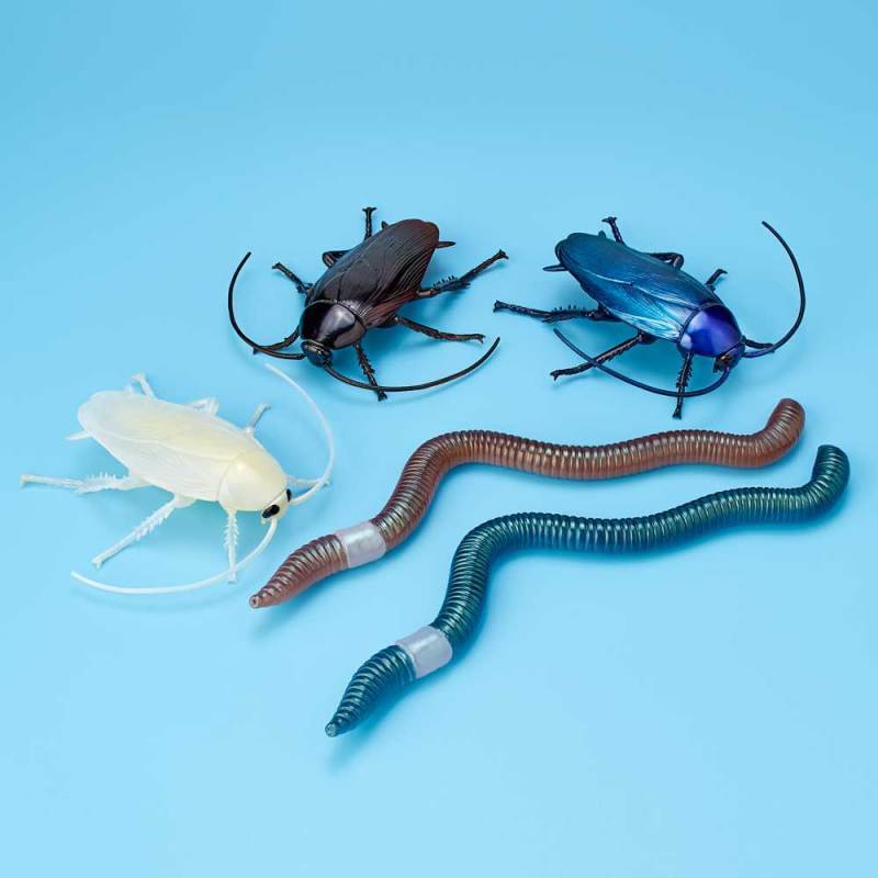 第一弹阵容分别有:蟑螂(金属蓝)、蟑螂、蟑螂(透明白)以及蚯蚓、蚯蚓(金属蓝)五种,采用软质素材制作,让整体可以扭曲变形,但在蟑螂胡须、翅膀与腿毛尾毛甚至是胸腹部复杂的生物构造细节上仿真呈现!无论是施以还原度100%的油亮色泽或是特殊的金属配色等,都不禁让人觉得毛毛的阿~※以下商品图,害怕蟑螂者慎入