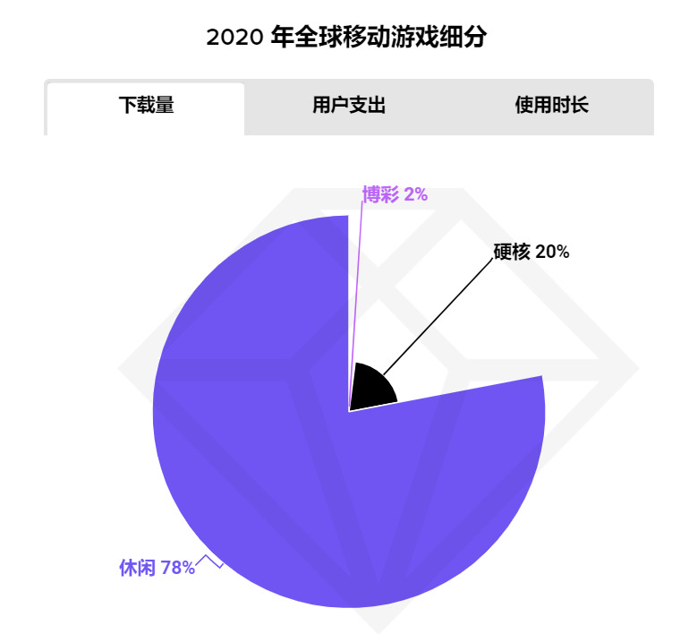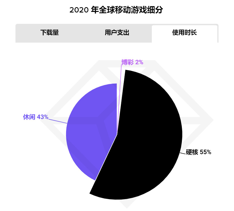 移动游戏市场有两种截然不同的游戏类别,一种是休闲游戏,它们大多支持免费下载,并通过广告变现。这些游戏受到大量休闲玩家的青睐。另一种硬核游戏,这类游戏更多以应用内购买为主,进而实现变现。它们会吸引更忠实的用户群体,该群体通常会花费更长的时间玩游戏。