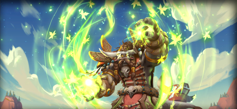 而“贫瘠之地”版本豪华预购所赠送的新英雄——哈缪尔·符文图腾则是牛头人一族中的德鲁伊领袖,其德鲁伊技法由玛法里奥亲传,是一位相当罕见的非暗夜精灵的大德鲁伊。