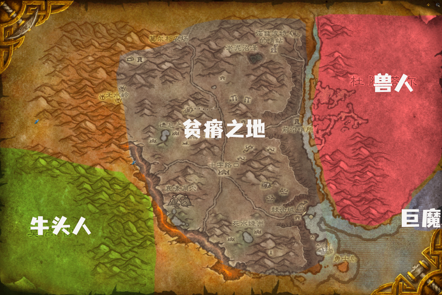 三支种族领地的核心交汇处便是贫瘠之地,因此三族的新人冒险者也往往在贫瘠之地完成他们的第一次相遇,这里也由此成为“魔兽世界”中大部分部落玩家的共同回忆。