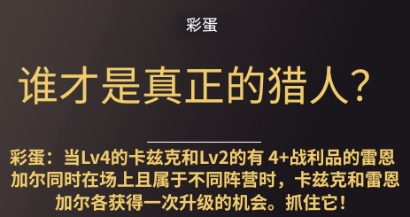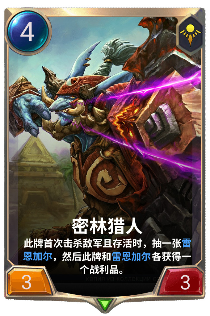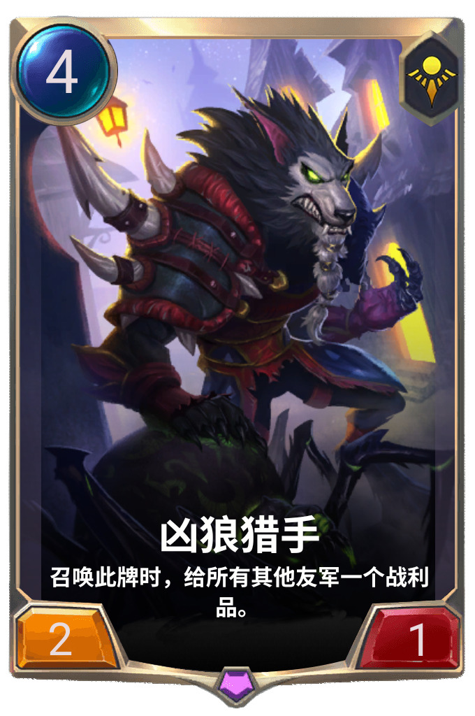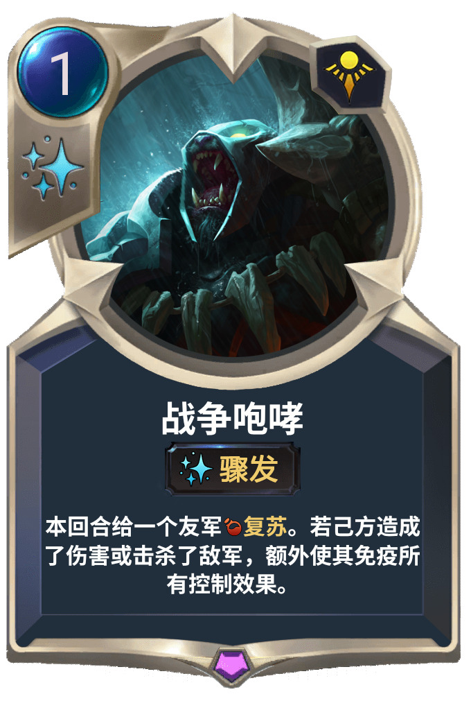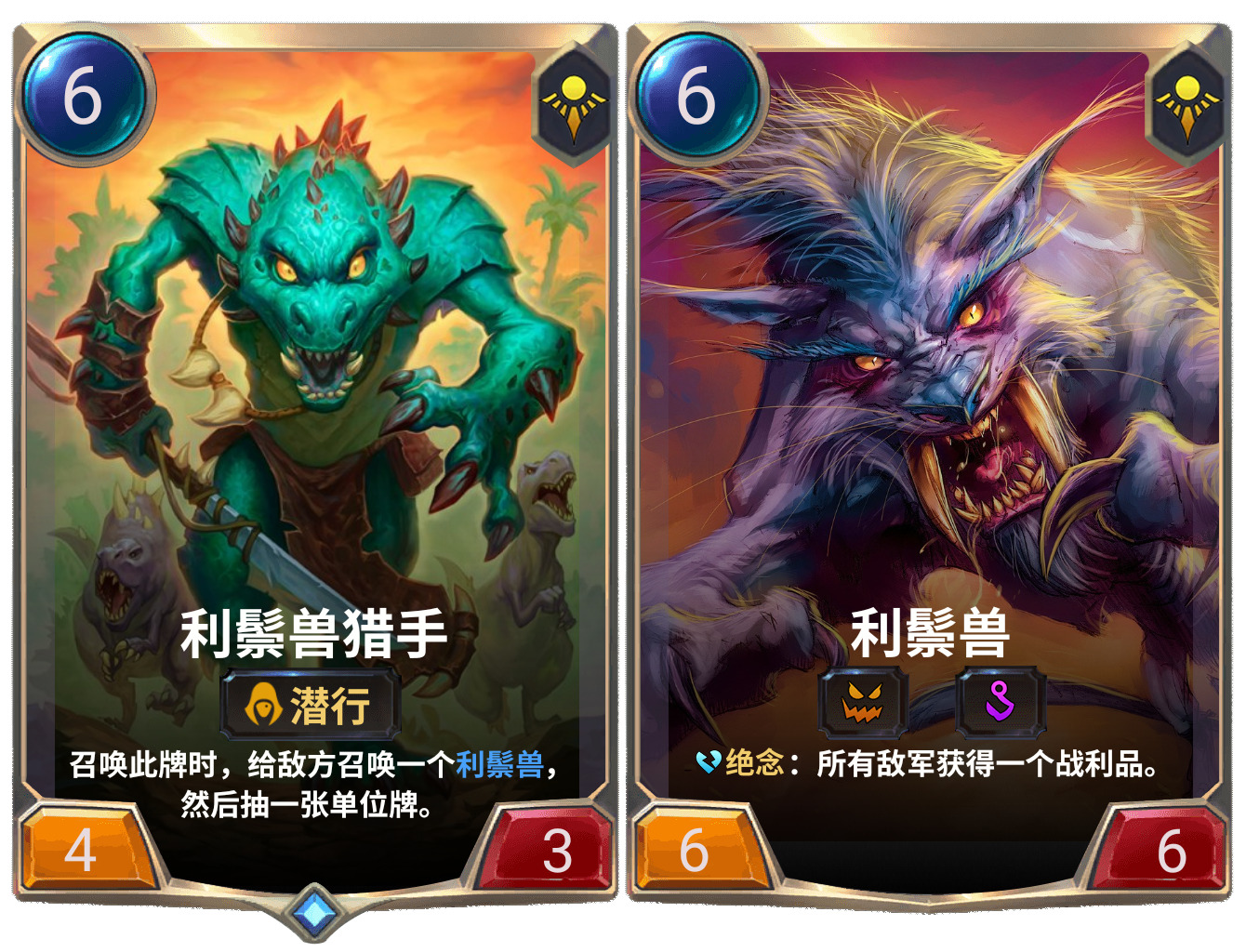 注:获得战利品时,从三个战利品效果中选取一个触发。若手牌中友军获得战利品,则在召唤此牌时才触发战利品的效果。
