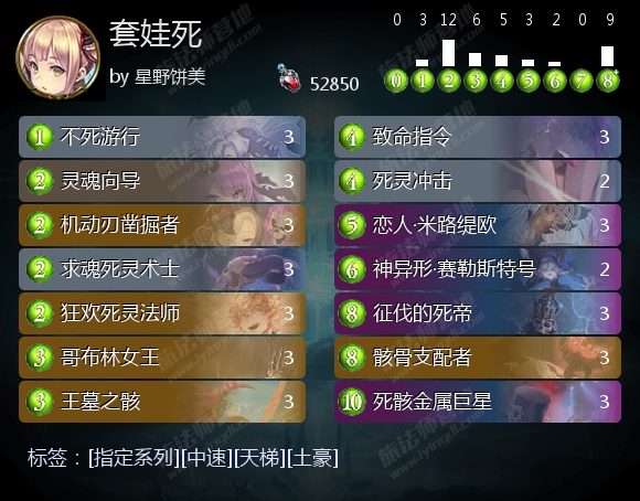 死灵是目前指定环境中唯一的“下水道”,而拯救弱势职业的方式无非两种:针对超主流思路,抓特定对手上分;或是采用博上限的构筑方式,通过天胡展开取胜。
