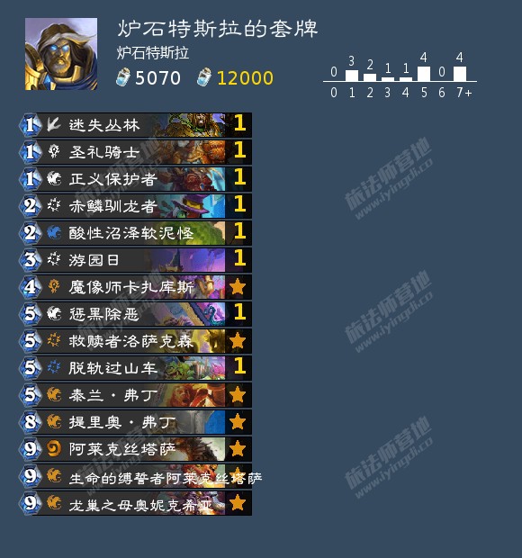 ps:不要拿神圣法术,咱们1费圣礼骑士稳定检索宝藏牌。4费法术及宝藏牌不建议拿,会卡4费卡扎。还有玩的时候一定要心怀谦卑!这样宝藏牌才会上手。