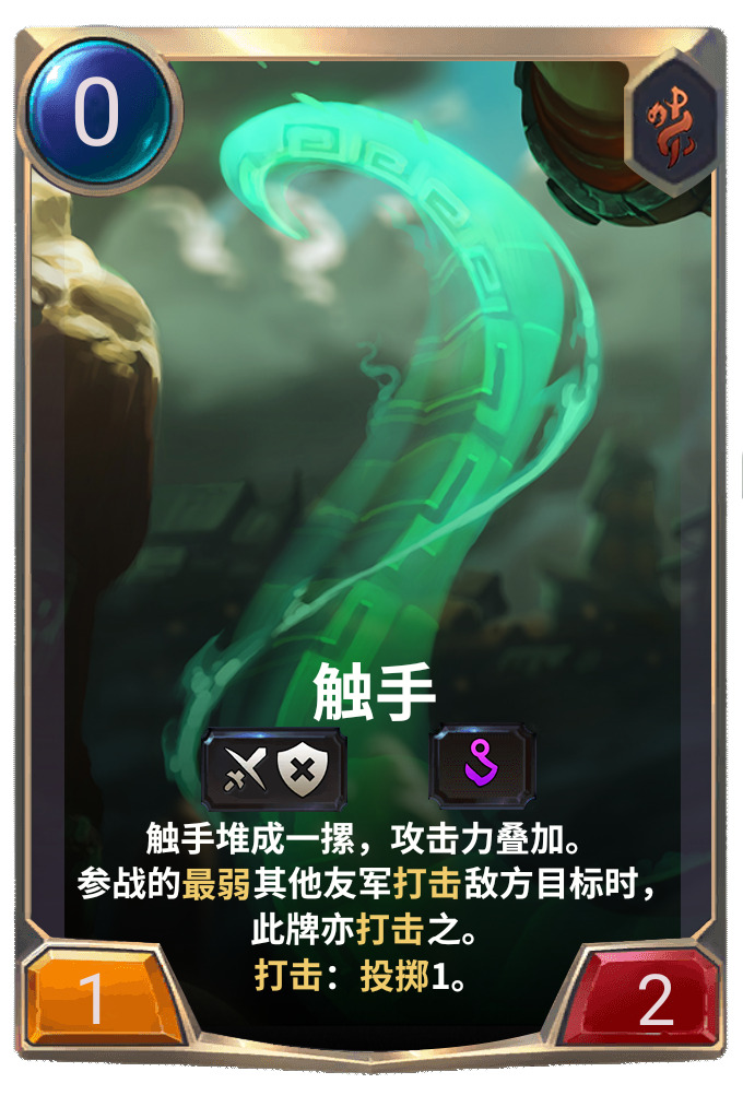 注:此牌的当其他非触手友军死去时的效果只有此牌在场上时才可以触发。